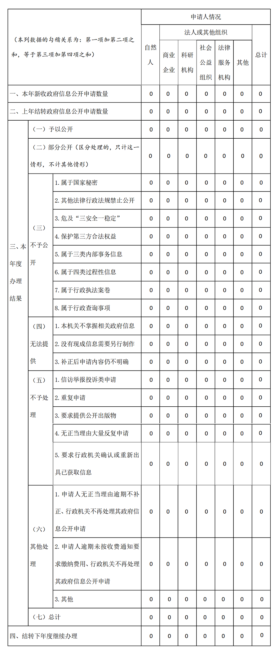 三、收到和處理政府信息公開申請情況