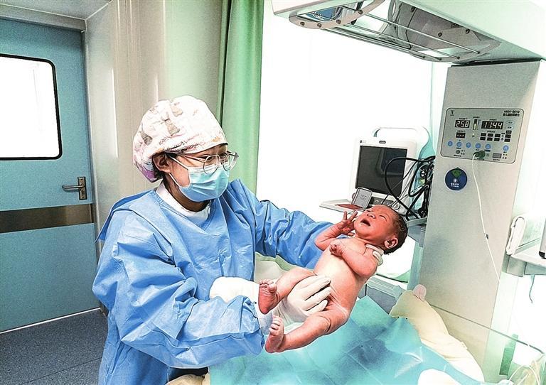 蘭州新區(qū)第一人民醫(yī)院產(chǎn)科醫(yī)生為新生兒做檢查。